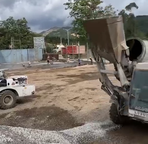 修路工程,魯樽LZ3500將砼料卸于施工面