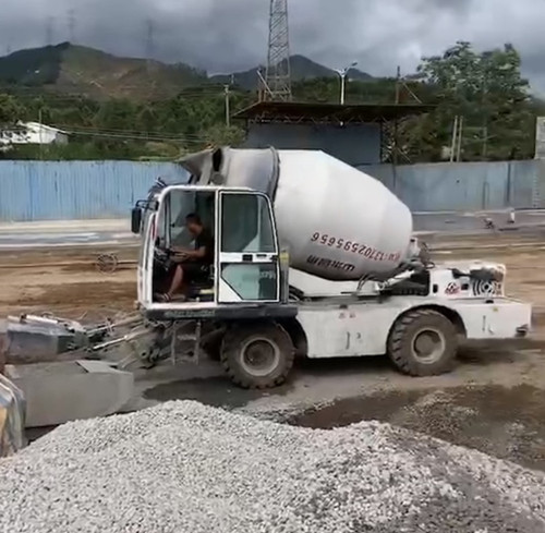 魯樽1.6方自動(dòng)上料攪拌車(chē)在東南亞地坪施工中
