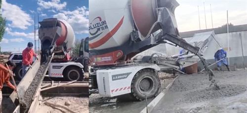 魯樽JBC4.0自動(dòng)上料攪拌車火力全開(kāi)攪制混凝土,每十幾分鐘就攪出4方混凝土,攪制完成后,270°的卸料口直接將料卸在挖好的溝渠內(nèi)及溝渠周邊。工人則將混凝土勻量推平,收光抹面,不多會(huì),一段溝渠便打好了。